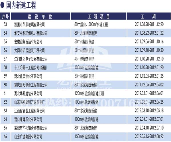 • 煙囪新建宏順建設工程有限公司是一家專業從事煙囪新建,煙囪防腐,煙囪內壁防腐,煙囪脫硫防腐,磚煙囪新建,水泥煙囪新建,鋼煙囪新建,水泥煙囪防腐,混凝土煙囪新建,煙囪拆除,煙囪維修,煙囪脫硫防腐等工程!咨詢熱線:13770071688。